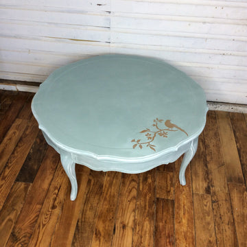 Round French Provencal Coffee Table w/Duck Egg & Stencil