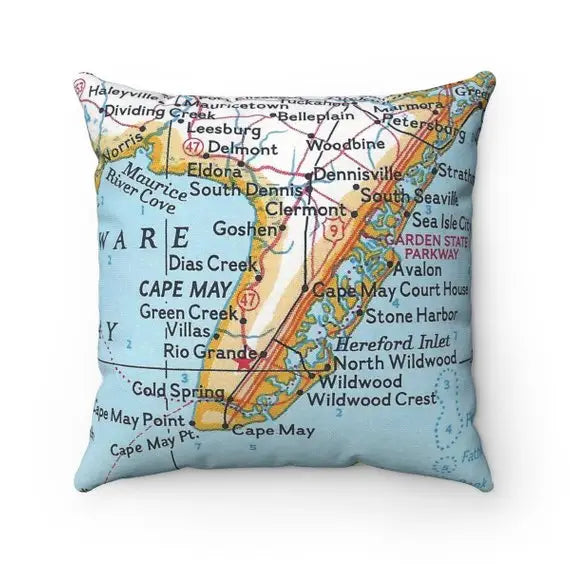 - This 18"x18" linen/cotton/poly throw pillow features a vintage map on one side.