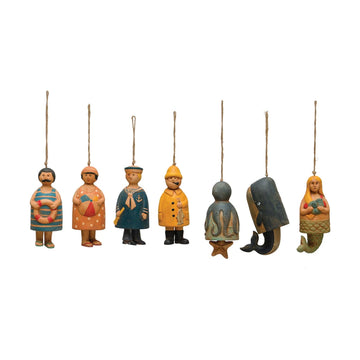 Nautical Stoneware Bells with Jute Rope Hanger, 7 Styles