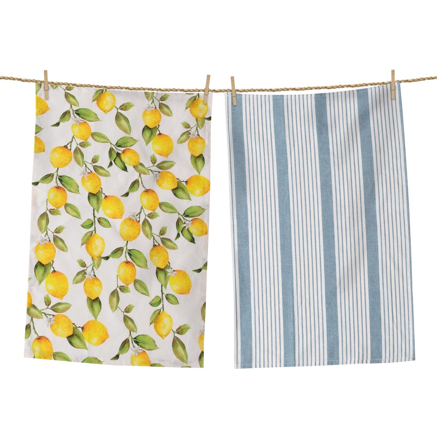 Tea Towels - Lemon and Blue Grain Sack Stripe